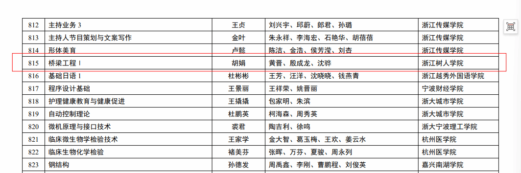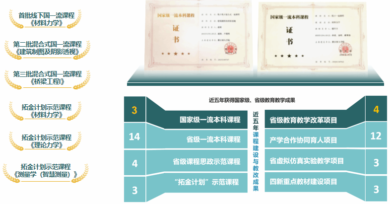 在课程创新方面,她主持的桥梁工程Ⅰ课程深度融合PBL与TBL模式,引入AI技术,构建“理论—实践—思政”三维教学体系,课程先后获评“浙江省线上一流课程”“省课程思政示范课程”,并最终入选国家级一流本科课程。