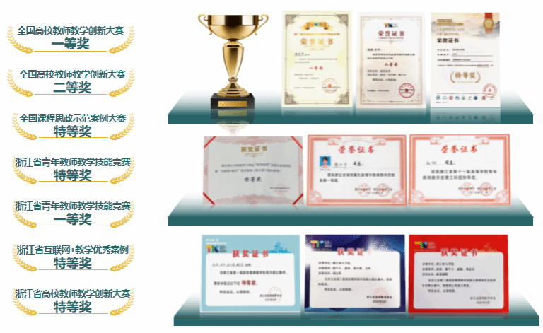 在教师发展方面,学院教师屡获佳绩,楼旦丰、赵欣分获全国教师教学创新大赛一等奖、二等奖,教师在省级青教赛、创新大赛中获特等奖、一等奖10余项,展现出扎实的教学实力与良好的教学生态。