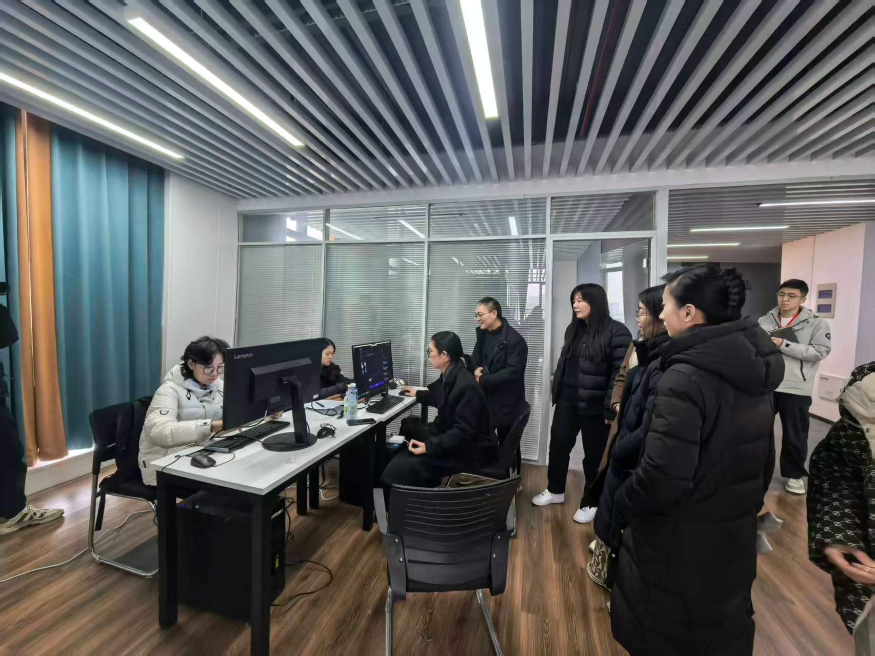 司晨视觉科技集团全国院校总监胡佳文对学院一行到访表示热烈欢迎,并陪同参观了企业核心的实训与技术区域。在虚幻引擎、影视后期等实习实训区,调研组详细了解了企业如何将真实产业项目转化为教学实践内容,深入考察了技术流程与实际应用场景,对该集团“项目融入教学”的产教融合模式给予了积极评价。随后,一行人走进AIGC实训区,现场体验了人工智能生成内容领域的最新应用,切身感受数字技术前沿动态。