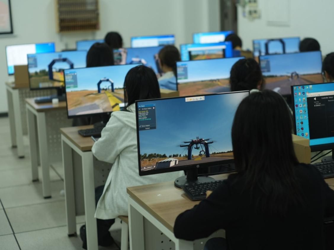 在演示环节,善于飞团队带来大疆FC100、T100、M400、Air3S、NEO及CAAC执照培训专用多旋翼教练机等十余台专业设备,精彩呈现精准悬停、平稳飞行等飞行演示,引得师生纷纷驻足观看。在专业教练指导下,社团成员与现场同学踊跃上手实操,沉浸式感受无人机科技魅力。